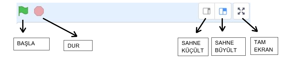 1. Menü Çubuğu: Scratch’ın yönetim, ayar komutlarını içerir.
