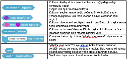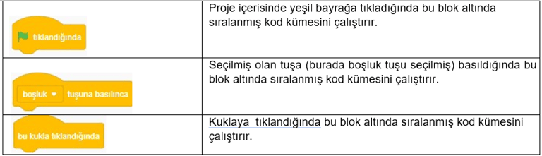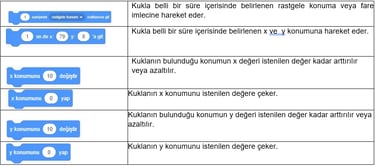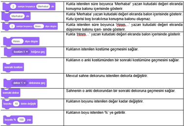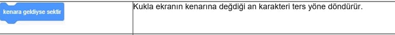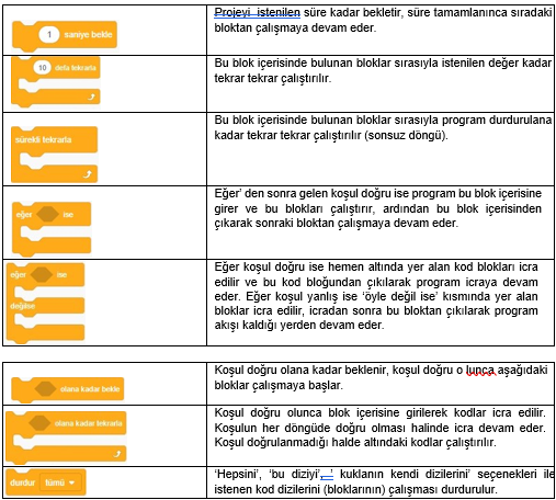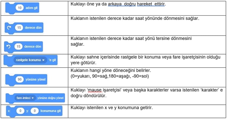 3. Kod Blokları: Karakterimizi programlamak için kullanabileceğimiz kod blokların bulunduğu kısımdır.