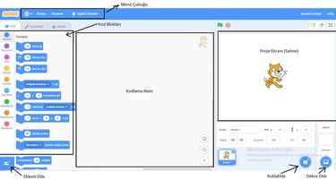4. Kodlama Alanı: Blokları sürükleyerek komut dizileri oluşturacağımız alandır.