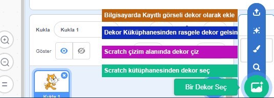 6. Dekor Ekle: Sahnemizin arka planına yeni dekor eklememizi sağlayan alandır.