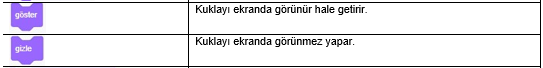 3. Göster: Proje çalıştırıldığında kuklanın ekranda görünüp görünmeyeceğini ayarlar.